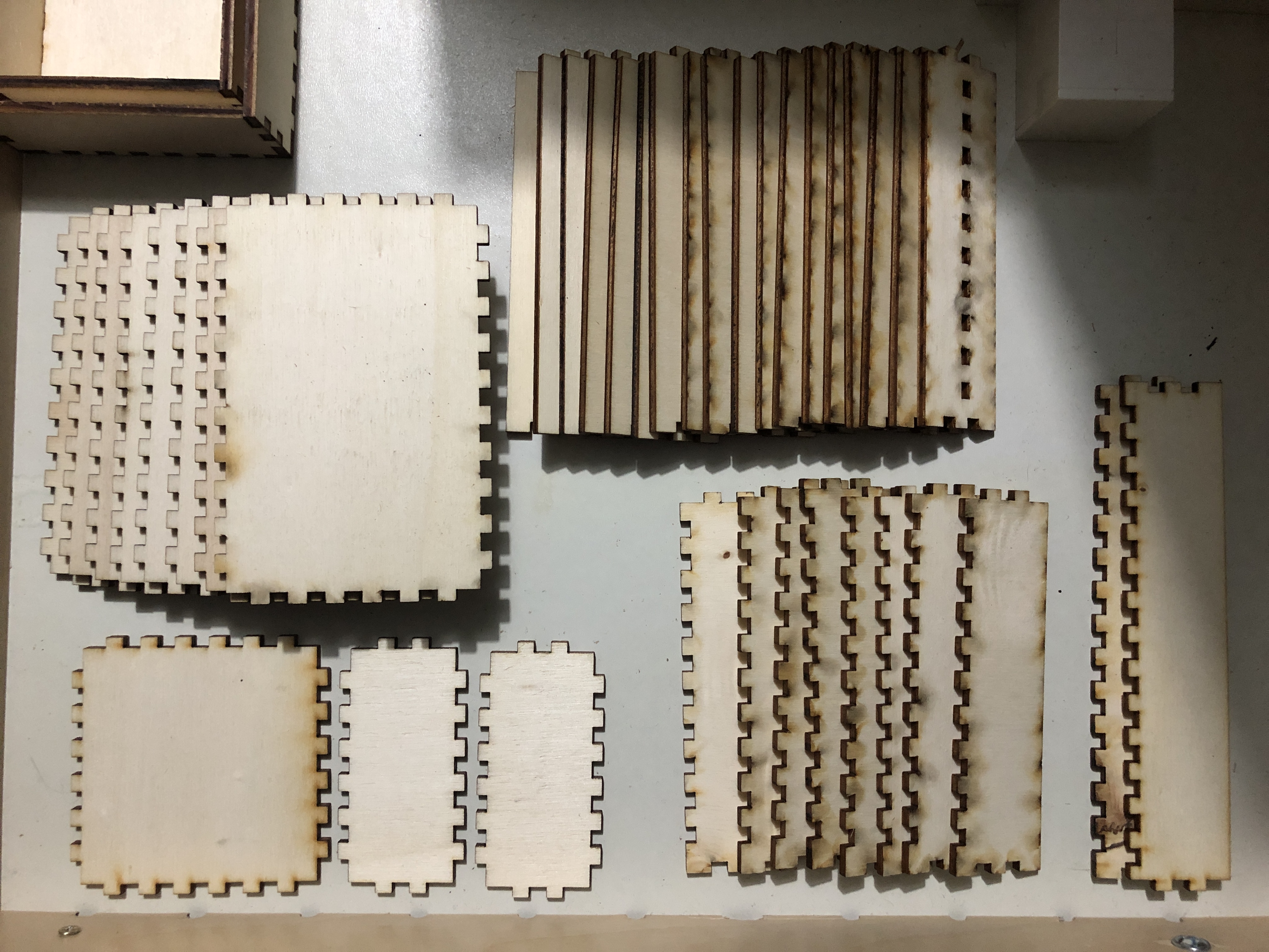 When I started having a certain number of loose boxes, the need for a higher level of storage became apparent. I started experimenting with a module system similar to Papi Max, using the same LASER cutting manufacturing technique as for the boxes. It wasn’t perfect but it was very encouraging and motivated me to continue.
