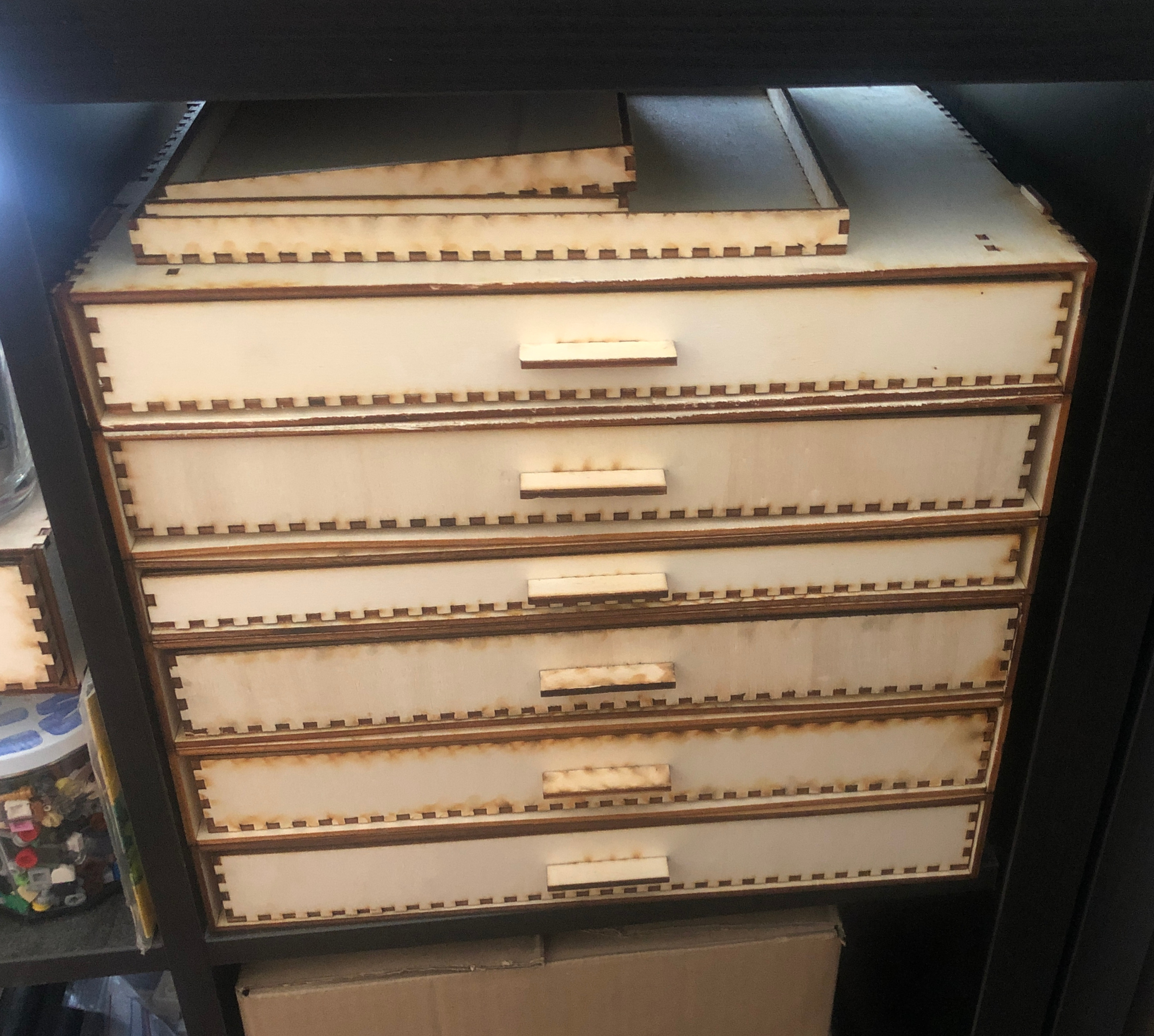 In 2021, I had the opportunity to learn LASER cutting in a makerspace near my home. After a training session, I started experimenting with this machine, and I quickly grasped its potential for making boxes that could serve as the basis for a custom storage solution, where you can carry, move, and arrange compartments in drawers at will.